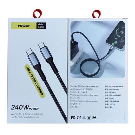 Upgrade your charging experience with this premium 240W USB-C to USB-C cable, built for speed, durability, and everyday reliability. Whether you’re charging a smartphone, tablet, or laptop, this cable delivers powerful performance with safe and stable charging.